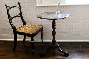 This fragile 12-sided piece of walnut on a single tripod must be the smallest table ever used by a writer, and it is where she established herself as a writer…having no room of her own, she established herself near the little-used front door, and here “she wrote upon small sheets of paper which could easily be put away, or covered with a piece of blotting paper”.