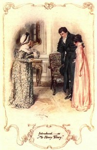 Henry is of course his charming self, and Mrs. Morland notices the change in her daughter. When he expresses a desire to pay his respects to the Allen’s seeking Catherine’s assistance to find the way, Mrs. Morland begins to understand the motive in his visit and consents to their walk. Once they are alone and can talk more freely, the truth starts to come out. He wastes no time and declares his sincere affection for Catherine and her heart in return was solicited. Hurrah! What a relief. Henry tells her that when he returned to Northanger, his father told him of her departure and ordered him to think of her no more. “Such was the permission upon which he had now offered her his hand.” He reveals to her relief that she had done nothing to offend the general and that she “was guilty only of being less rich than he had supposed her to be.” Being mistaken by her fortune and connections he had courted her acquaintance in Bath and solicited her company at Northanger. John Thorpe had informed him in Bath of his acquaintance and hopes of marrying her himself. Thorpe then proceeded to pump up her fortune from her father and legacy from the Allen’s. The general never doubted his source. Henry and Eleanor were astounded that their father’s interest in her and his command for Henry to attach her affections. John Thorpe later revealed to the General that he “confessed himself to have been totally mistaken in his opinion of their circumstances and character.” The general is enraged with everybody but himself. Catherine heard enough to “feel that in suspecting General Tilney of either murdering or shutting up his wife, she had scarcely sinned against his character, or magnified his cruelty.” Henry’s indignation of how Catherine had been treated rallied his honor and affections.