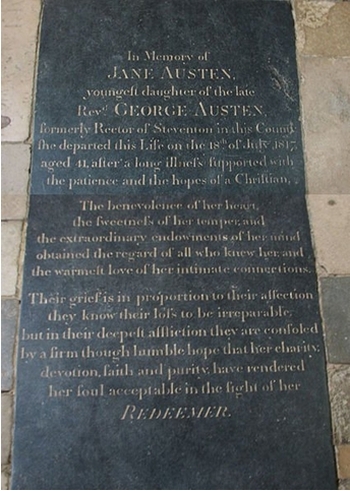 In celebration of the upcoming bicentenary decade of Jane Austen’s published works (1811-2011), a new permanent exhibit will open on April 10, 2010 at her resting place Winchester Cathedral in Winchester, England. The exhibit will reveal the renowned British author’s life and times in Hampshire and focus prominence to her grave site in the cathedral’s north aisle of the nave where she was buried on July 24th, 1817, five days after her death in Winchester at age 41.