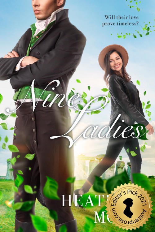 For Jane Austen fans the possibility of meeting their favorite author or living in one of her novels is the ultimate fantasy. While time-travel is not available to us, creative and imaginative stories are. Recent books such as The Jane Austen Project and the Austen Adventures series have given us in-person meetings with Jane Austen during her early nineteenth-century life. In Nine Ladies, Heather Moll’s latest release, we experience the awe-inspiring ingenuity of Diana Gabaldon’s time-travel Outlander series combined with the classic hate at first sight love story of Jane Austen’s famous novel Pride and Prejudice, but with a twist.