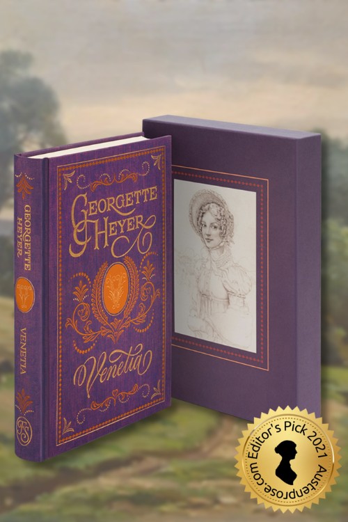 Venetia is a book rich in character, comedy and pathos and it is fitting that in this, Georgette Heyer’s centenary year, the Folio Society have recognized her extraordinary talent in publishing this gorgeous edition of Venetia. Heyer was proud of Venetia, and she would have been elated to see her novel so exquisitely produced; she would also have been delighted to see it in the Folio Society catalogue on the same page as The Jane Austen Collection and Novels by the Brontë Sisters.