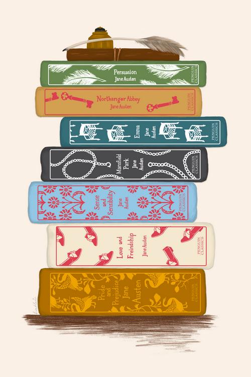 JANE AUSTEN BOOKSTACK PRINT