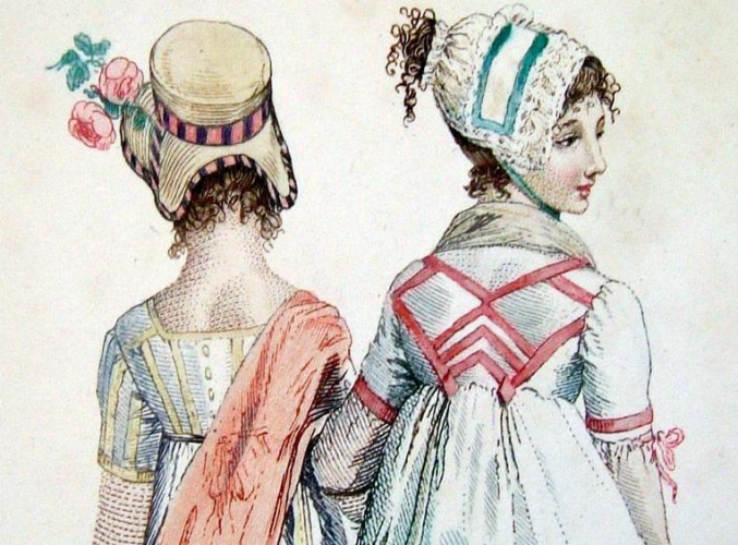 There are mentions of trimming bonnets in Austen’s novels as well. Who could forget Lydia Bennet’s boast after buying a bonnet which she claims is not very pretty and wants to “pull it to pieces”?